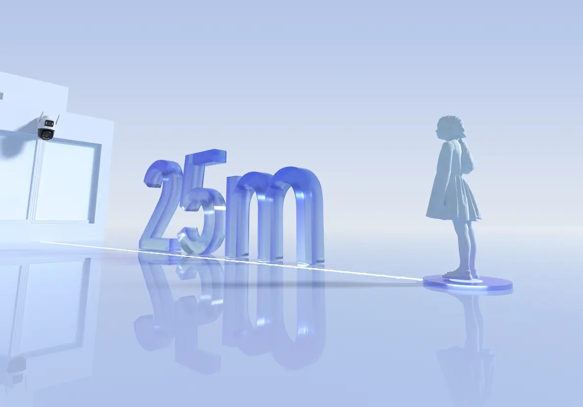 بر اساس فناوری AOV، دوربین AOV Dual برد تشخیص بسیار طولانیتری نسبت به دوربینهای باتریدار معمولی، تا ۲۵ متر، بدون تشخیص اشتباه انسان یا وسیله نقلیه دارد.